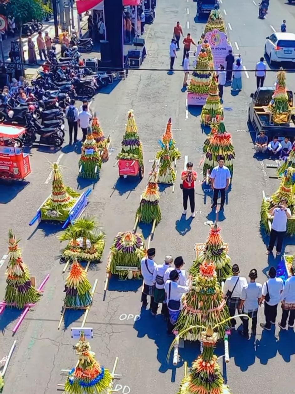 Jember – Ribuan warga memadati pusat kota untuk menyaksikan kemeriahan Parade Ancak Agung dalam rangka memperingati Maulid Nabi Muhammad SAW, Rabu (24/9/2025). Arak-arakan gunungan hasil bumi itu berangkat dari depan Bank BCA Jember dan berakhir di Alun-alun Jember, menghadirkan suasana religius sekaligus meriah.